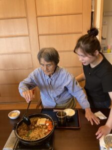 今日はお誕生日でお好きなすき焼きを召し上がって頂きました