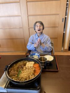 今日はお誕生日でお好きなすき焼きを召し上がって頂きました