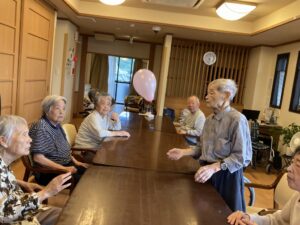暑さにも負けずにお元気にお散歩され、室内では風船バレー🎈に力が入ります(^^)/