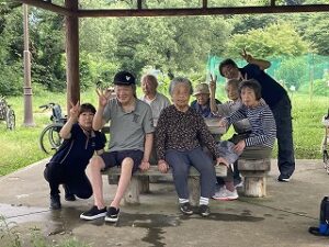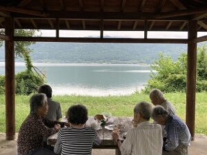 紫陽花を鑑賞したり、東屋で余呉湖を眺めながら