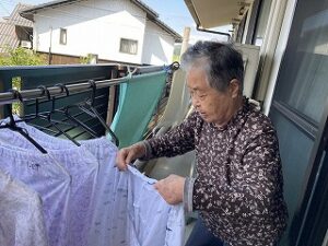 天気も良く、洗濯物干しや取り入れ、畳み迄して頂きました。お地蔵様までの散歩です
