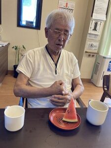 今日は まんてんでスイカ割をしました😊、皆さん楽しんでおられました。