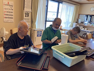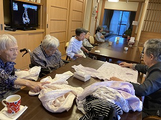 まだまだ、暑い日が続きますが皆さん元気にお過しです。洗濯物干しをされたり畳んだりしていただきました。