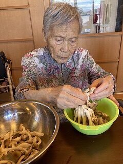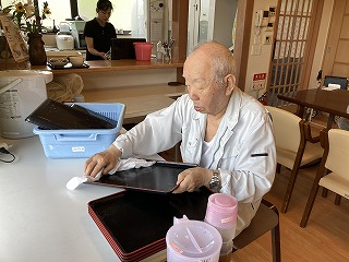 食事の用意や、テーブル拭きをして頂きました。今日も、美味しい食事が出来ました。