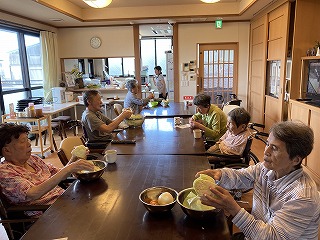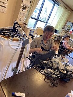 皆さん、食事の準備をされました。洗濯物干しをされました。日課の散歩です。