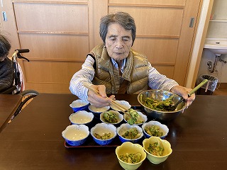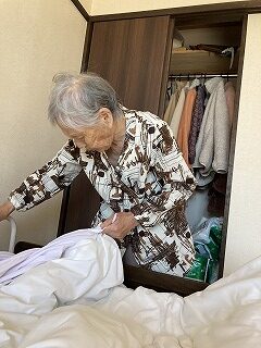 食事の準備、洗ったあとの布団カバーつけなどしていただいています。