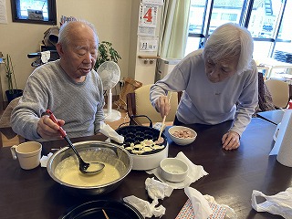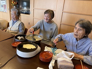 皆様元気に室内ではお料理や体操など、自主的にご参加されました。感謝。
