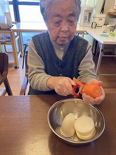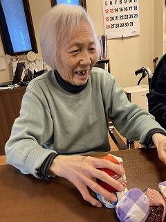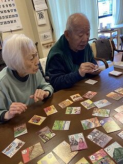 カルタ取りやお手玉をされ盛り上がっておられました。食事の準備をされました。