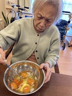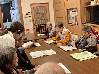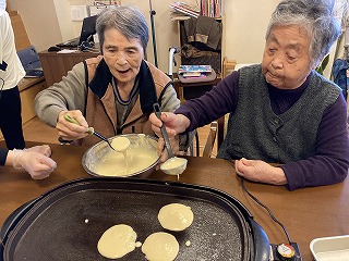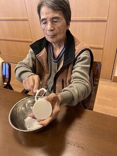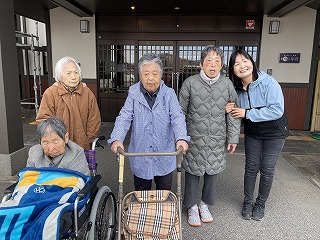 皆さんで手作りおやつを作られました。寒さにも負けず日課の散歩、お地蔵さんまで行きました。夕食前には、歌を唄っています。毎日いろんな事をしておられます。