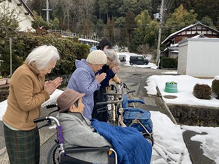 今日はお元気にお散歩に行かれ、雪を眺めておられました。