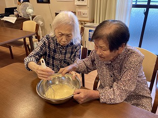 おやつはホットケーキ作りをして美味しく召し上がりました😊