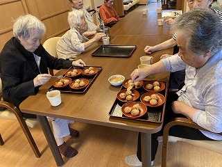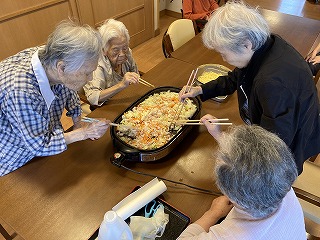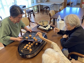 今日は皆で昼食は焼きそばとおやつにはたこ焼きを作って頂きました。