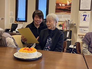 本日誕生日の利用者様がおられ、昼はちらし寿司、おやつはケーキでお祝いしました🍰