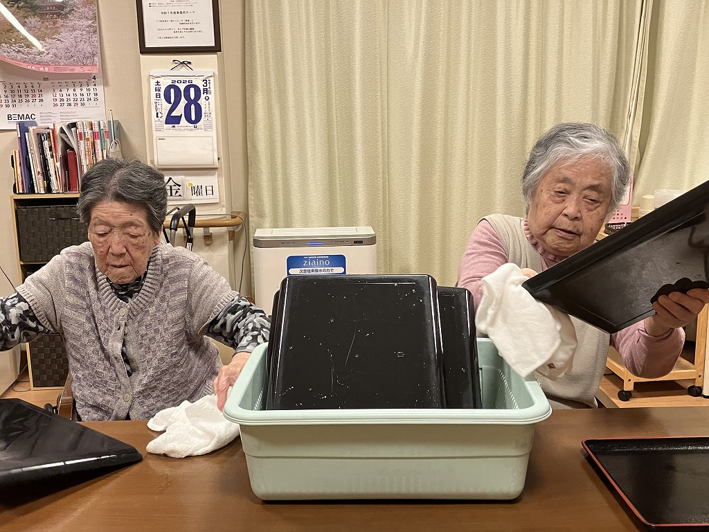 近所のお地蔵様まで散歩に行ったり、後片づけや洗濯物たたみなどを手伝って下さっています(*´▽`*)