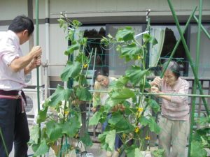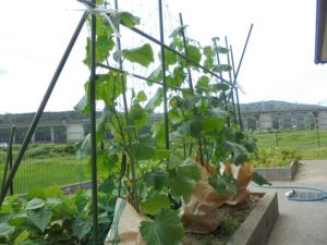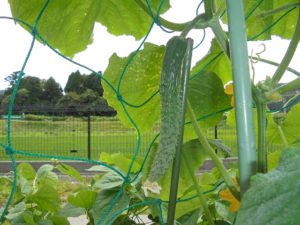 本日は、きゅうりのつるが長くなってきたので、背の高いポールで補強をしました♪