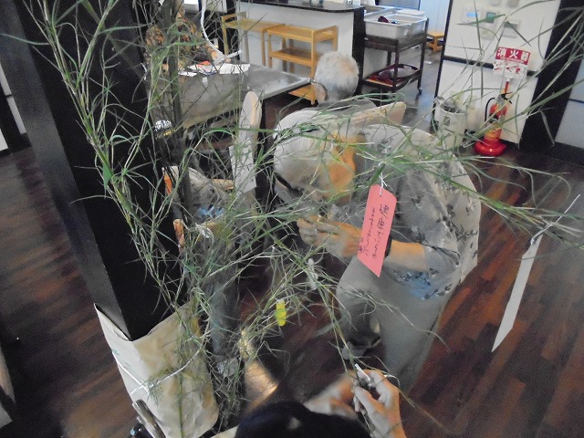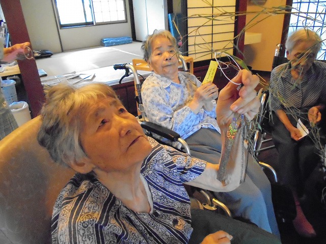 明日は、七夕の日という事で、短冊に願いを乗せて飾り付けをしました。