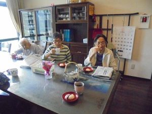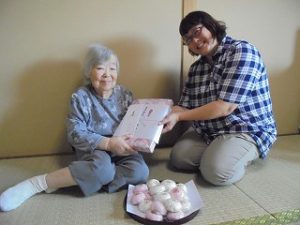 15時のおやつに紅白饅頭を美味しく頂きました*