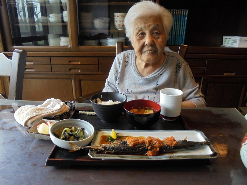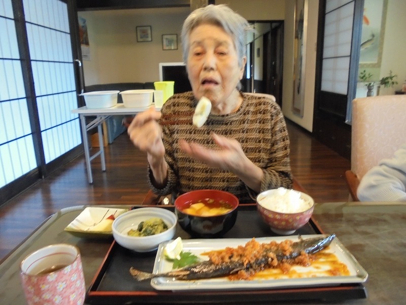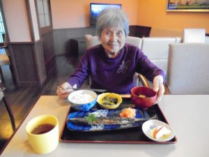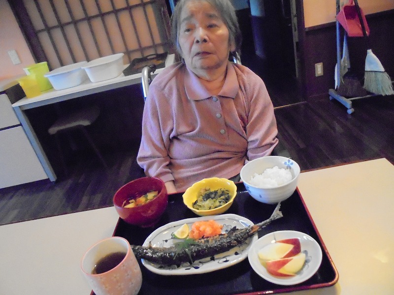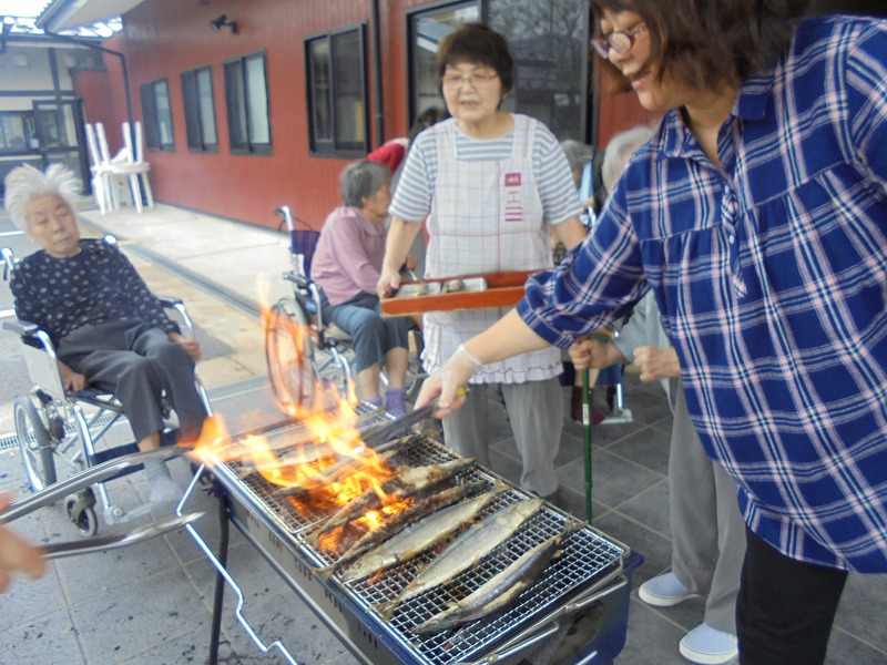 今日は秋のお魚、秋刀魚を皆さんで焼いて頂きました。炭火で焼きたて、頂笑顔が耐えませんでした。