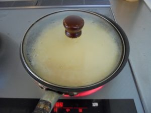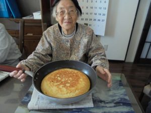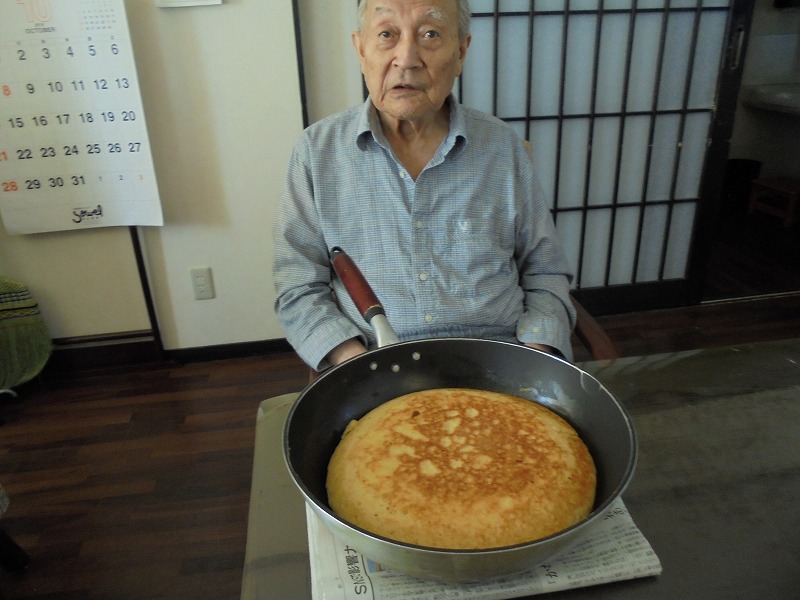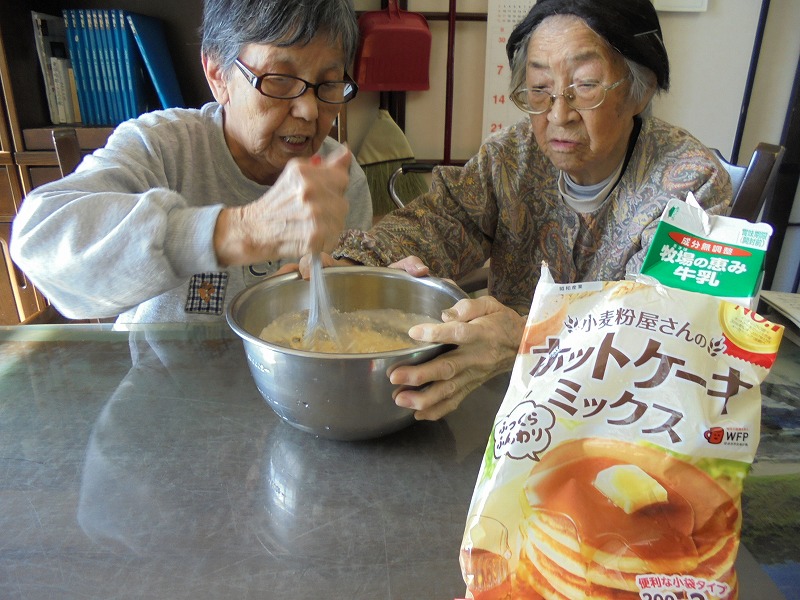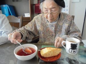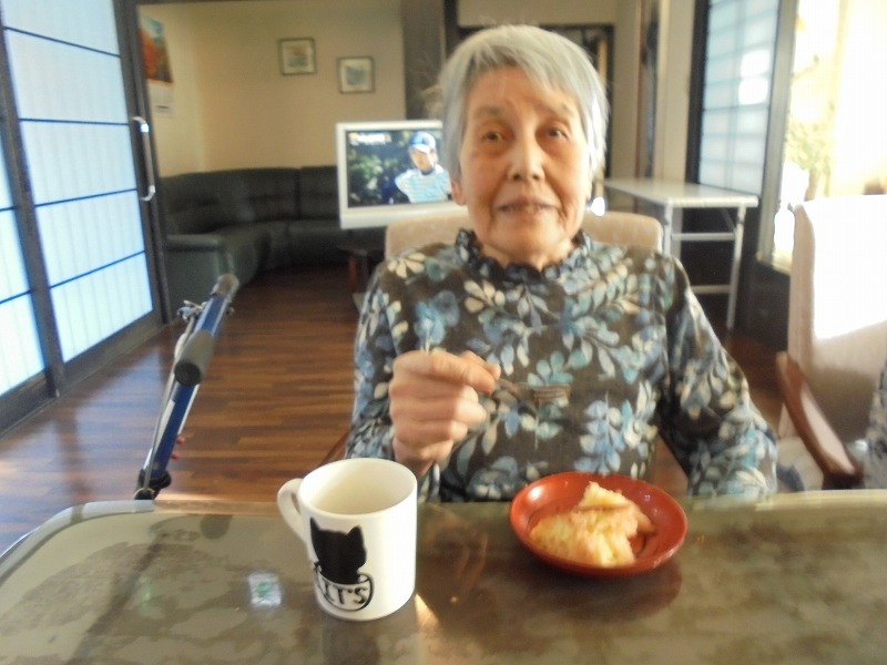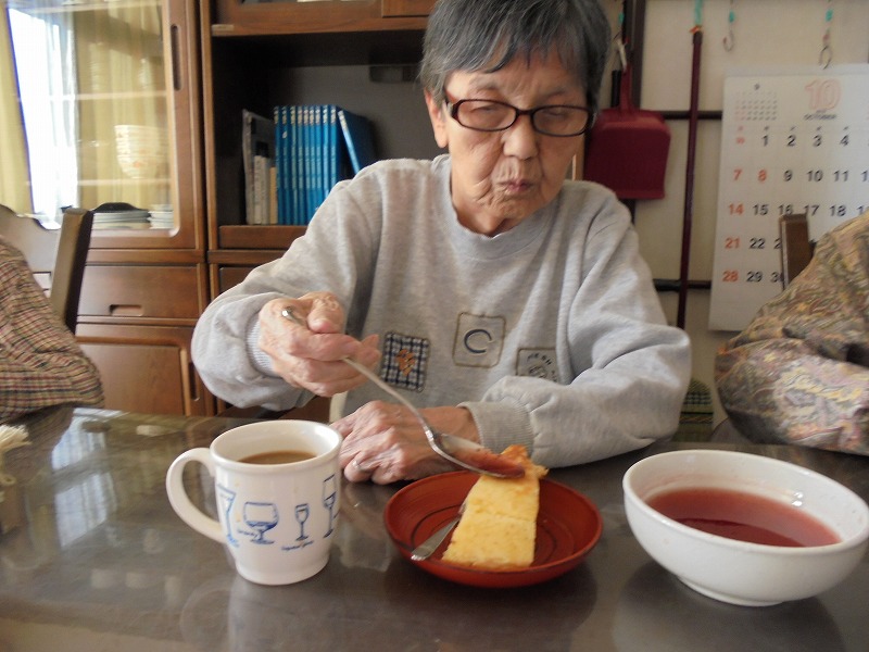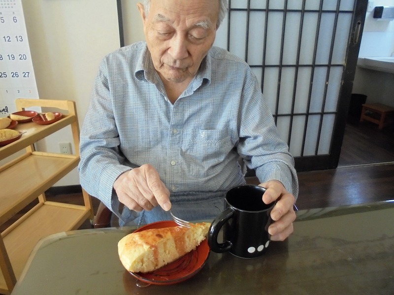 おやつの時間に今日は皆さんでケーキを焼かれイチゴクリームを乗せ召し上がられました。