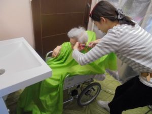 今日は訪問の美容師さんがカットに来られ皆さんお綺麗になられました。