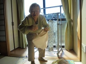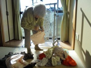 乾いた洗濯物を取り込んでたたんでおられます:)