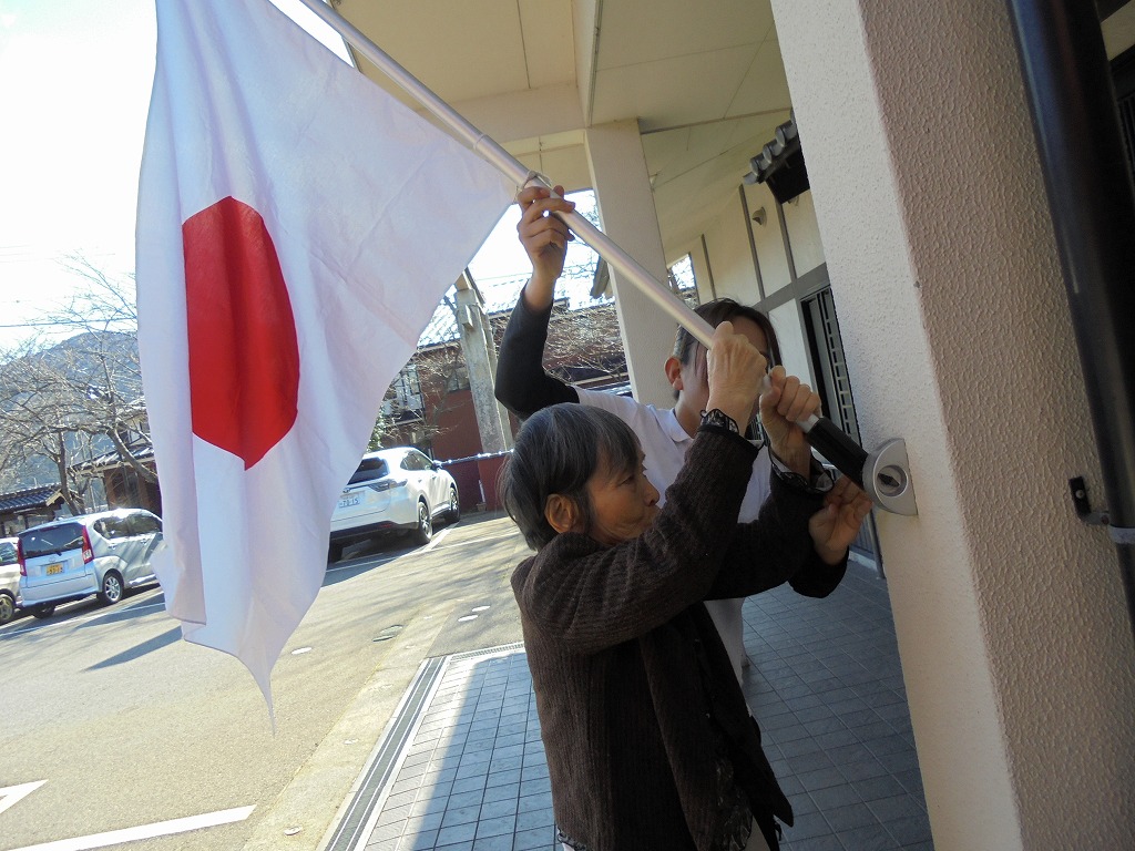 今日は成人の日ということで、まんてんも日の丸国旗を立てました。