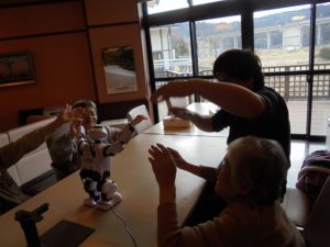 今日は介護ロボット、パルロくんと歌をうたったり、体操をしたりしたりしました。