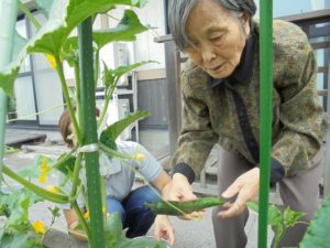 本日は、野菜の収穫や洗濯物を干したり、日課の散歩に行きました♪