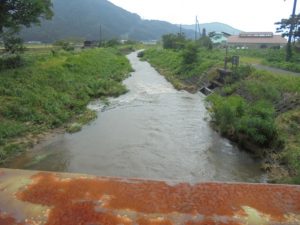 近所の川も結構増水してます。さすがに今日は釣り客もいませんね。