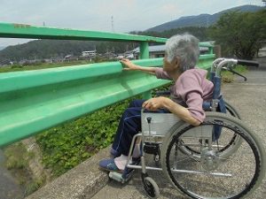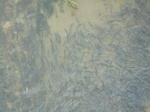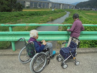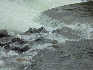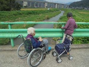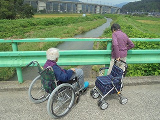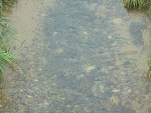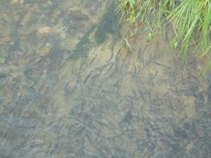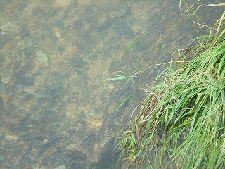 散歩の道中、産卵のため川を下る落ち鮎がいないか、橋上からながめました。