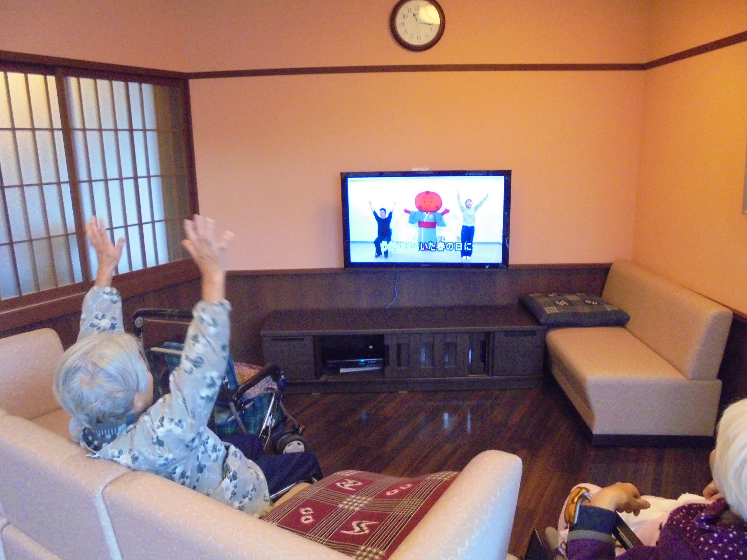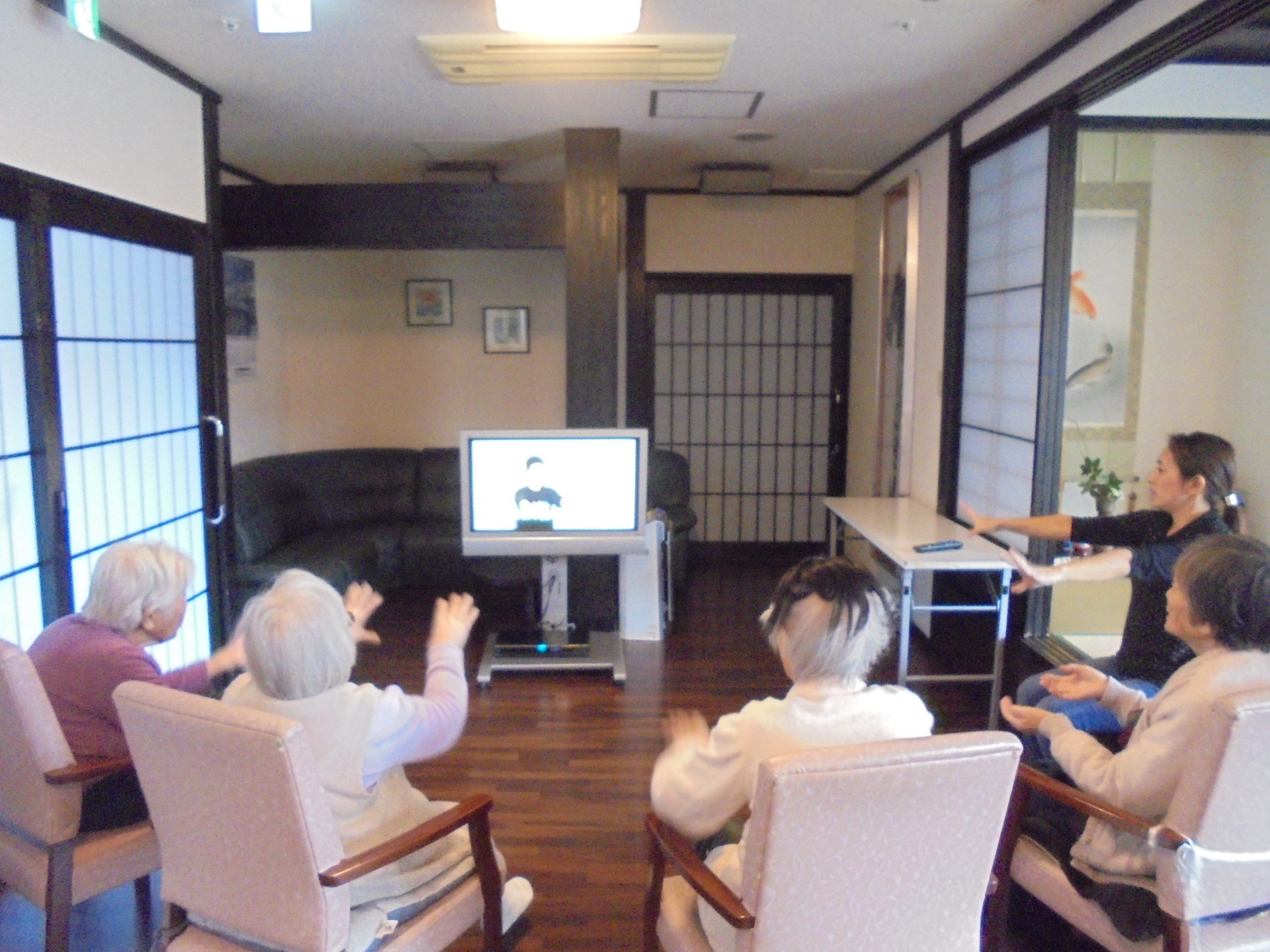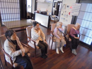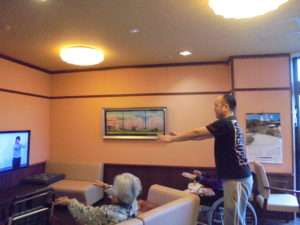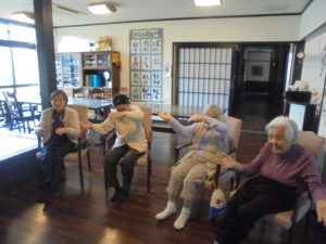 今日は、利用者さんと一緒に体操をして体を動かしました。