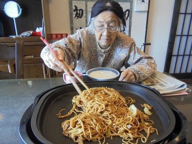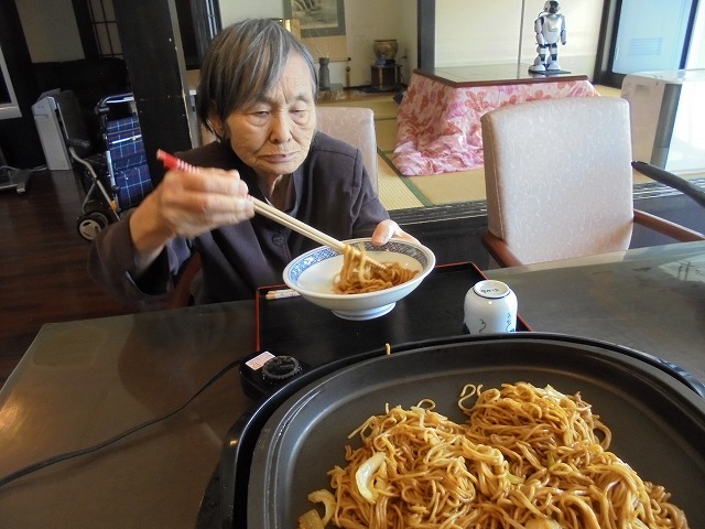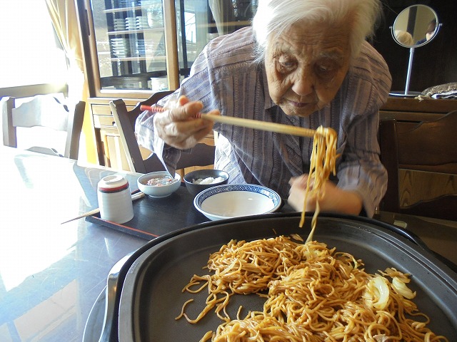 今日のお昼は焼きそばを焼いて、皆で取り分けました。