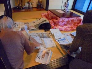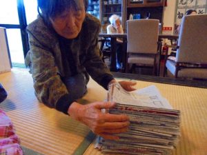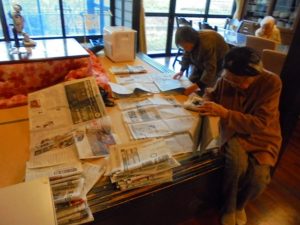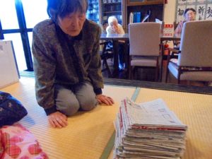 古新聞が大分溜まったので、1枚づつに分けてたたんでおきます。