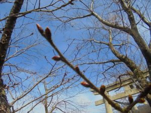 沿道の桜に蕾がついていました。開花が待ち遠しいですね。