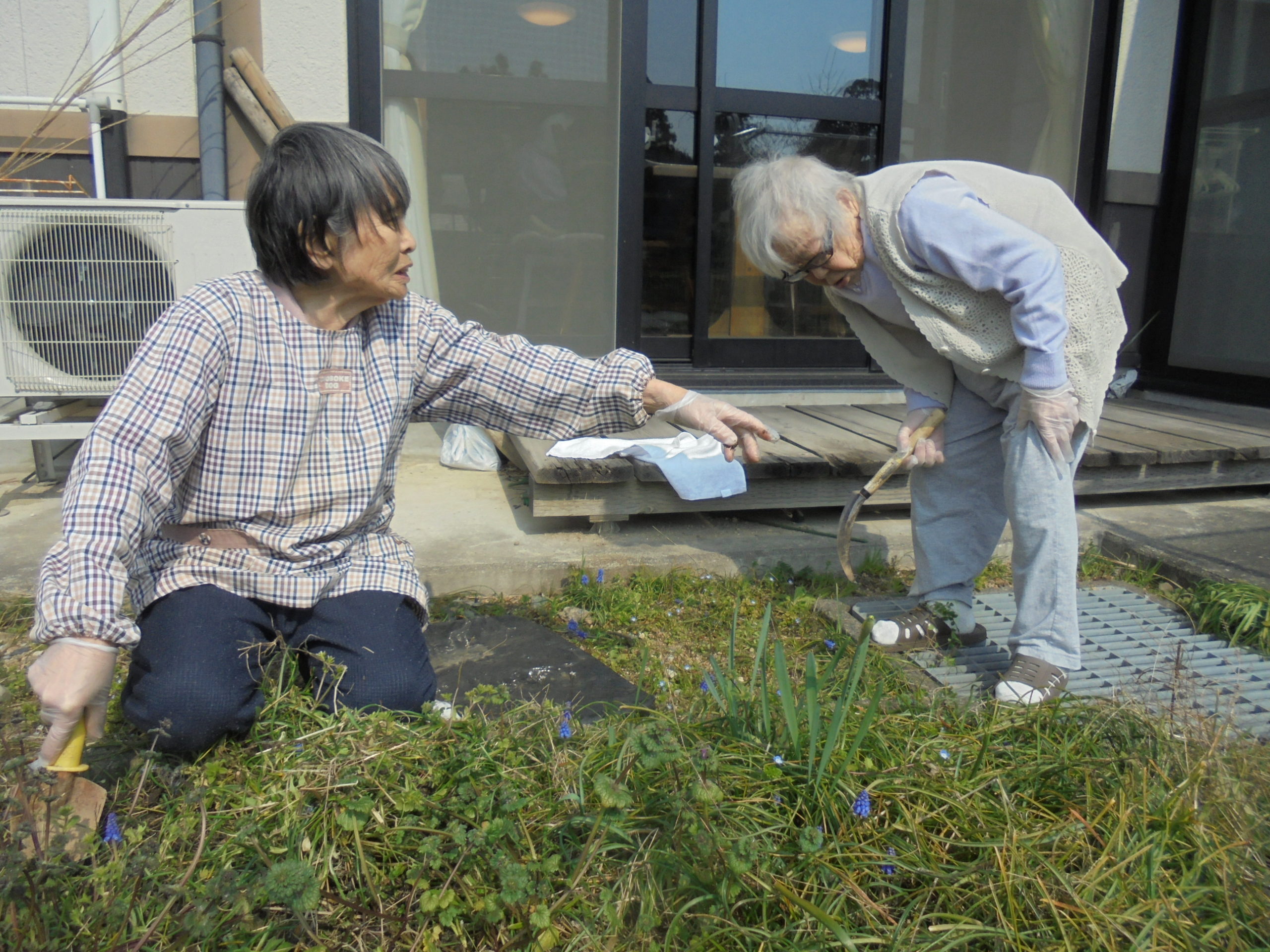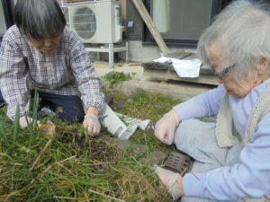 ☆花壇(兼 畑)には、ムスカリが咲き、草も伸びてきました。