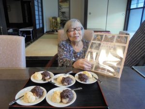 今日がお誕生日のご利用者様を、色紙とお好きという牡丹餅でお祝いしました!