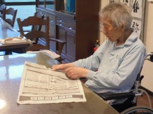 テレビ体操や洗濯物畳みをされたり、新聞を読まれたりと