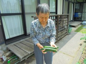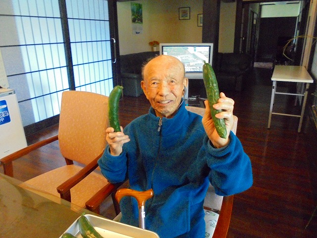 大きなキュウリを収穫できましたね。