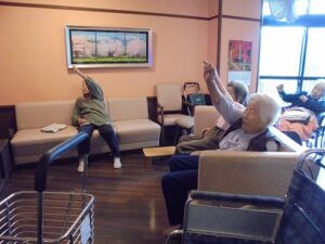 本日は、テレビ体操をしたり食後にお茶碗を拭いたり洗濯物を畳んだりと
