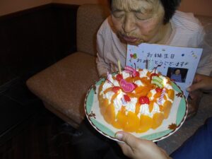 今日がお誕生日のご利用者様をケーキと色紙でお祝いしました♪