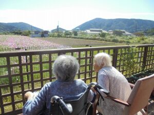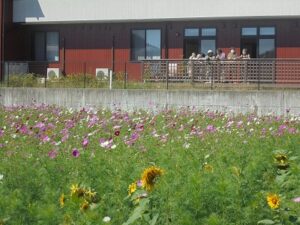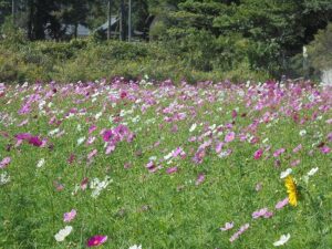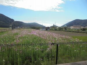 お隣の特養まんてん塩津の横の畑で秋桜が綺麗に咲きだしました。