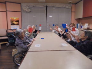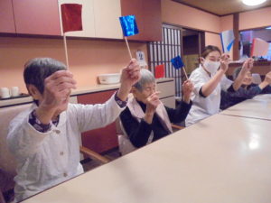☆旗揚げ体操で笑いました 。 もうお手上げ ヽ(^o^)丿