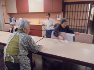 ☆食事前にはテーブル拭きと手の消毒をします !(^^)!