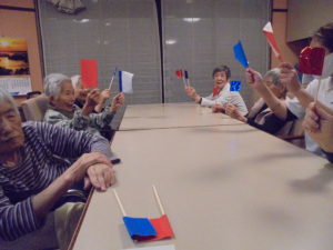 ☆旗揚げ体操で笑いました 。 もうお手上げ ヽ(^o^)丿
