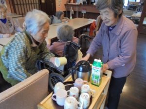 今日は、洗濯物干しやティータイムの用意、食事の準備をしました。