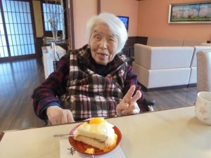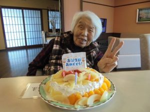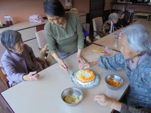 本日お誕生日を迎えられたご利用者様を、皆で作ったケーキでお祝いしました。