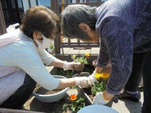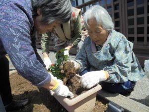 草むしりをした後は、花の苗植えをしました~!!