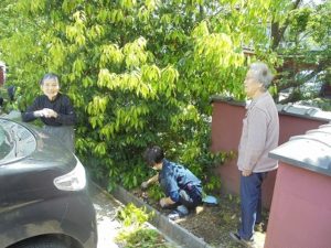 今日は駐車場の周りの草むしりです。だいぶん草が生えてたんですが、奇麗にしてくださいました!