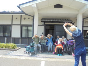 ☆日陰で体操を! 先生は炎天下⁉ お疲れさまです 💦