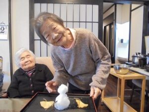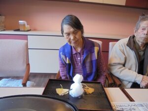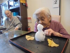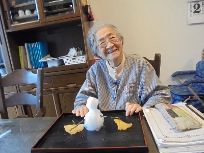 雪をかき集めて、雪だるまを作りました!!